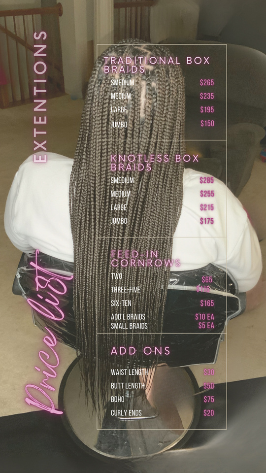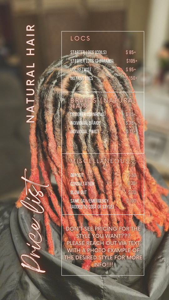 All clients must be washed and blown out prior to scheduled appointment!! if you have any questions about this, please reach out!! A blowout can be done upon arrival, fees apply. If blowout isn’t done properly, one will be done at your expense!! There is a $50 non-refundable deposit required to secure your appointment!! No deposit=no appointment!! Your deposit will go toward total cost of your service. if you need to reschedule, please notify me asap! I understand things come up, but please extend that courtesy. If you do not, your deposit will be forfeited and you will be blocked!! Same day/Emergency appointments are available,but will be contingent upon my schedule/availability.